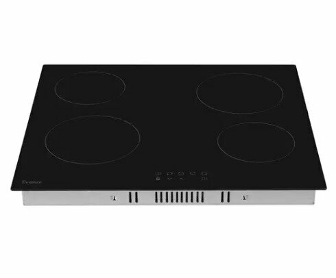 Варочная панель EVELUX электрическая, стеклокерамика, Hi Light, 60 см, 4 конфорки, сенсорное управление, 9 уровней мощности, таймер 1-99 мин, блокировка управления, защитное отключение, 6000 Вт, черное стекло, 590х520х50 мм.