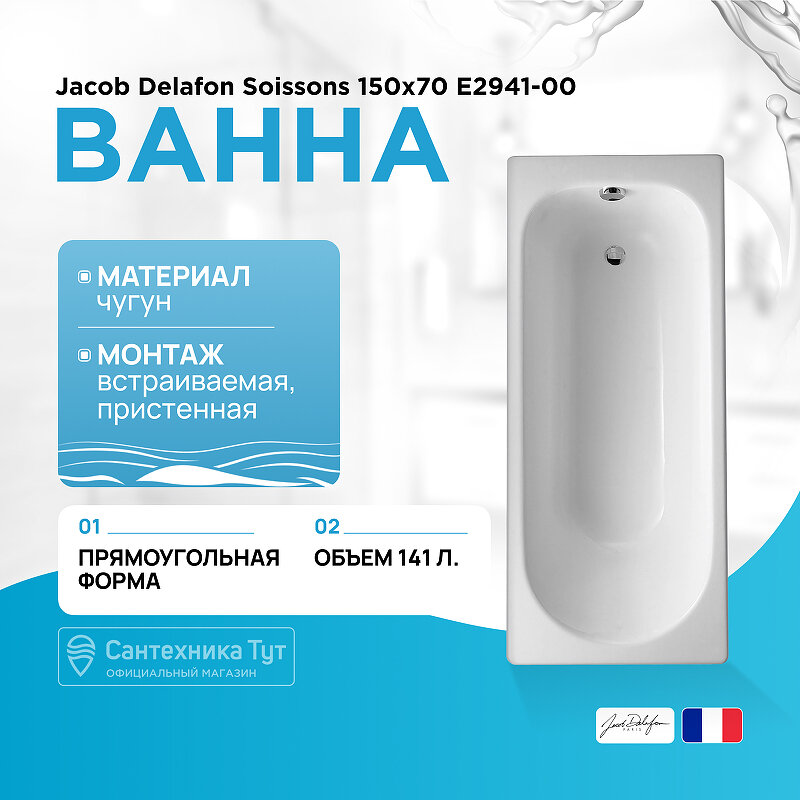 Ниже Вы можете прочитать отзывы на Чугунная ванна Jacob Delafon Soissons 150х70 E2941-00, ознакомится с подробными характеристиками, посмотреть интересные обзоры и фотографии на Чугунная ванна Jacob Delafon Soissons 150х70 E2941-00.