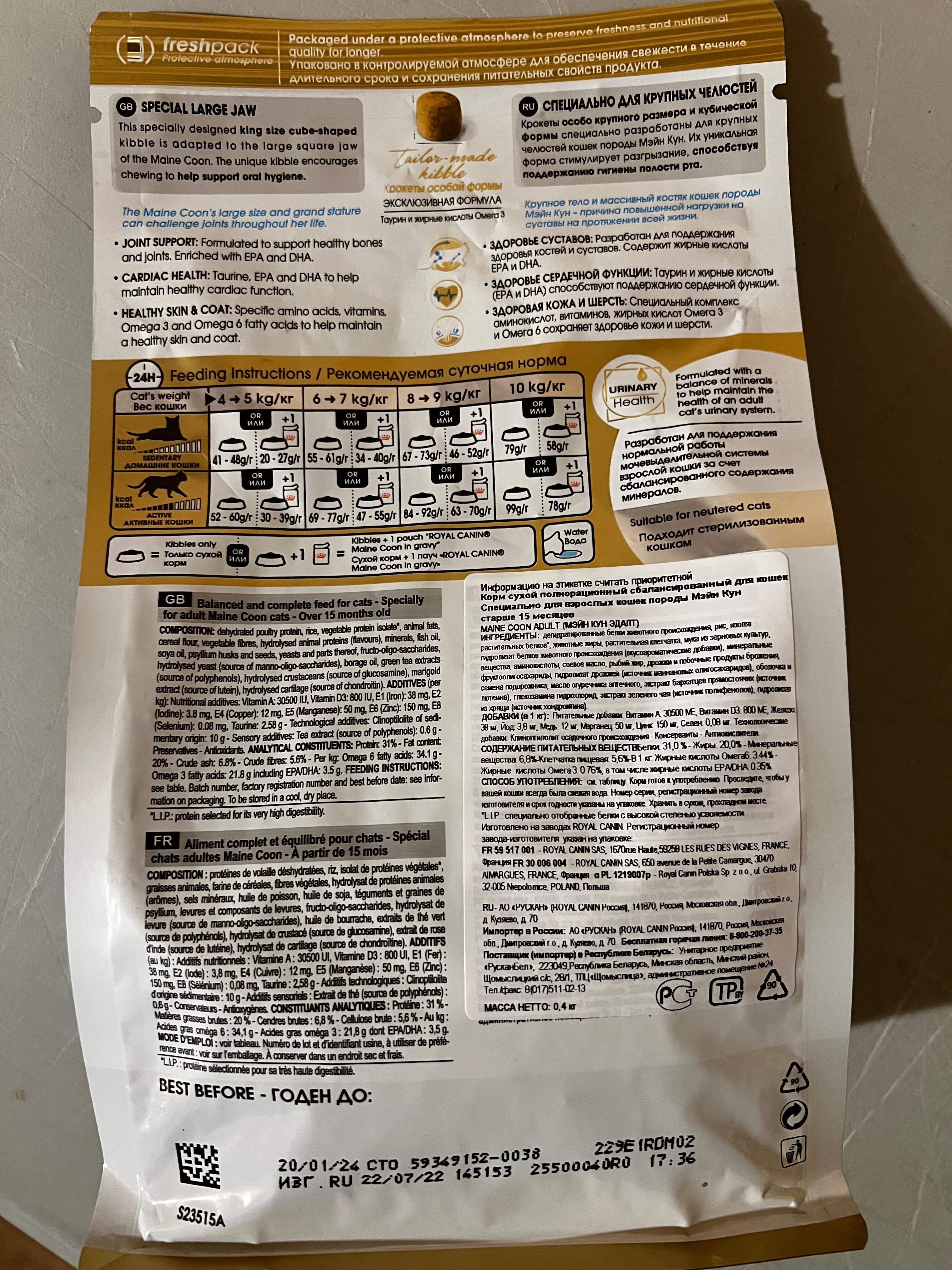 Корм д/кошек сух 400г ФБН Мэйн Кун Royal Canin (Роял Канин)/10 интересное:
