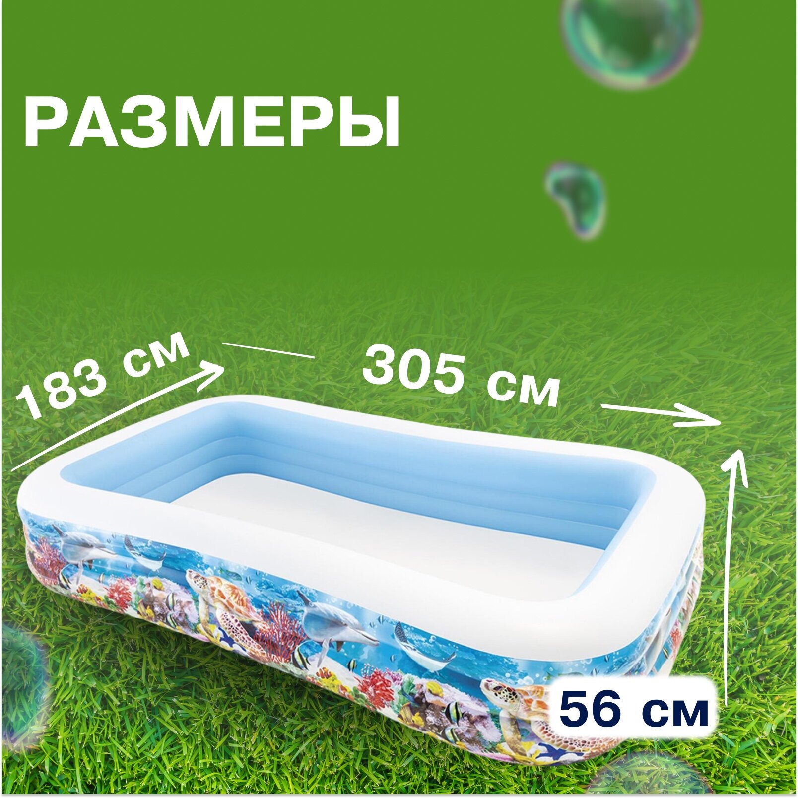 Бассейн надувной "Морское дно", 305x183x56 см, от 6 лет, 58485NP INTEX