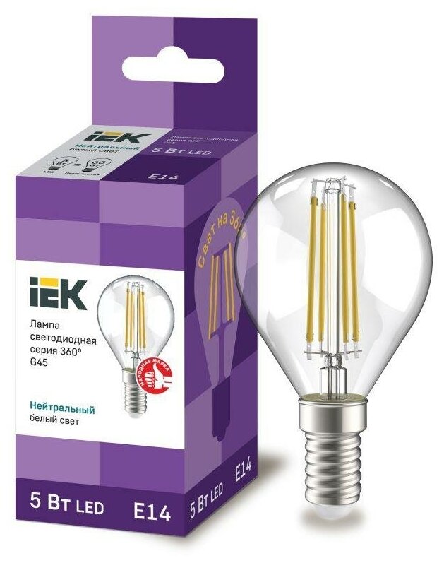 Купить Iek LLF-G45-5-230-40-E14-CL Лампа LED G45 шар прозр. 5Вт 230В 4000К E14 серия 360