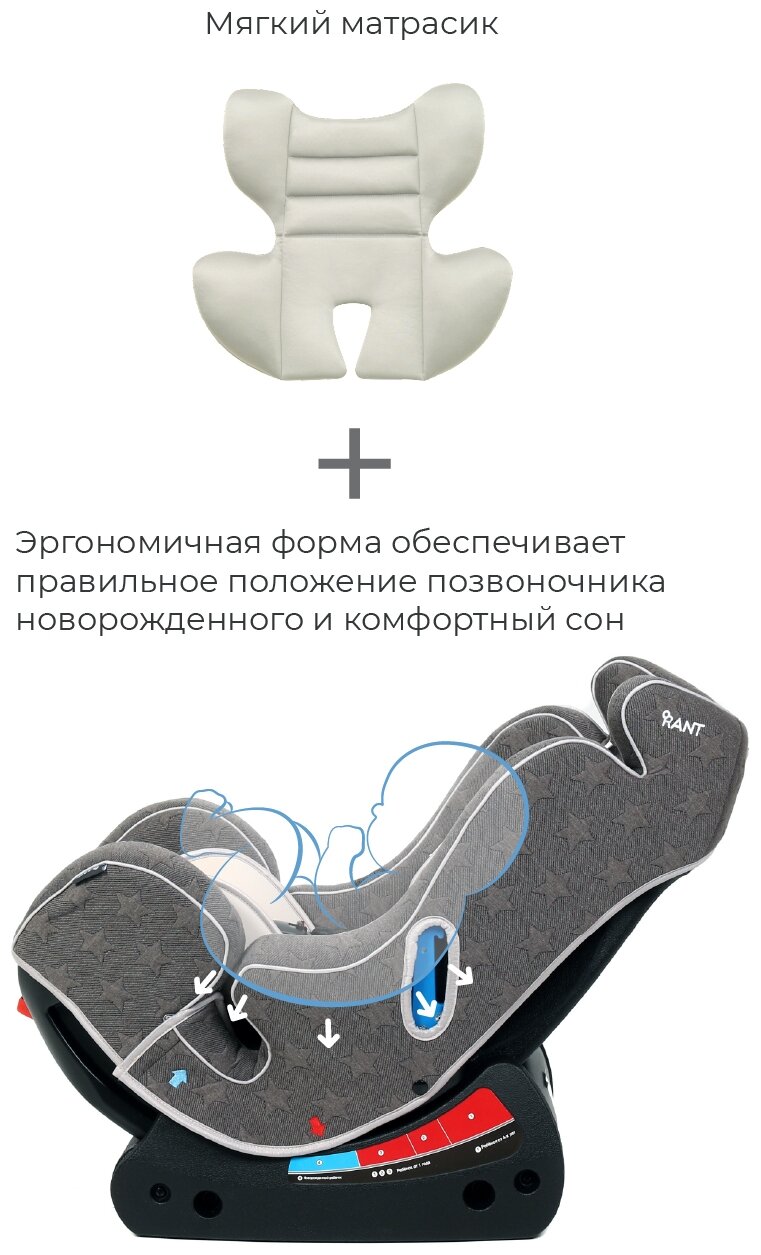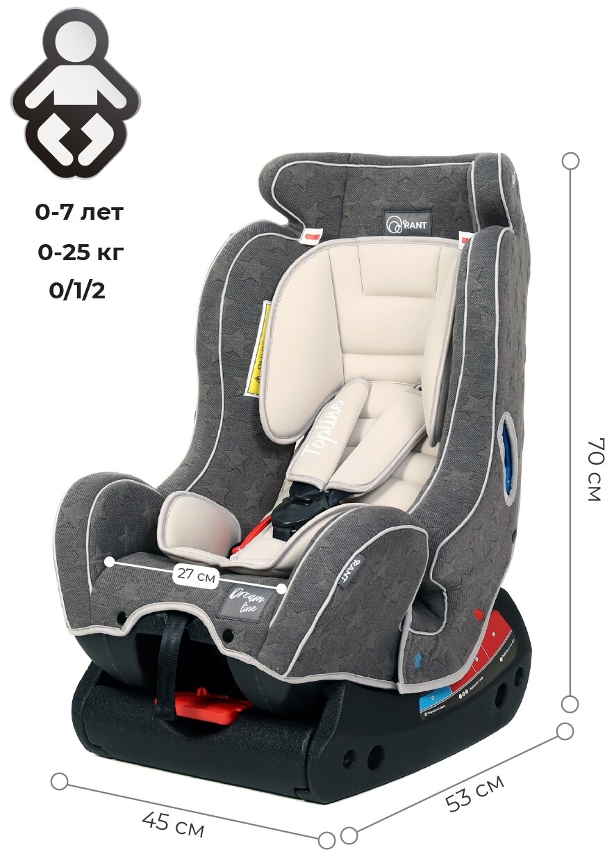 Автокресло детское Rant Top-Line Dream Line группа 0+/1/2 от 0 до 7 лет вес 0-25 кг серый интересное:
