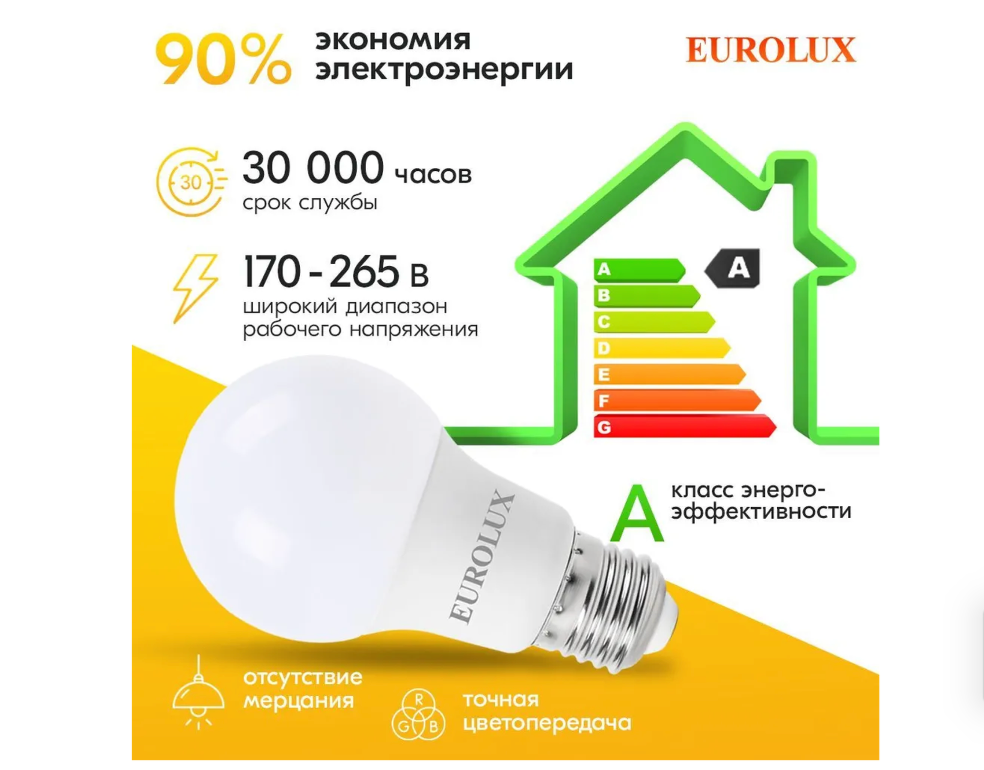 Лампа светодиодная LL-E-A60-11W-230-6K-E27 (груша11Втхолод.Е27) Eurolux интересное: