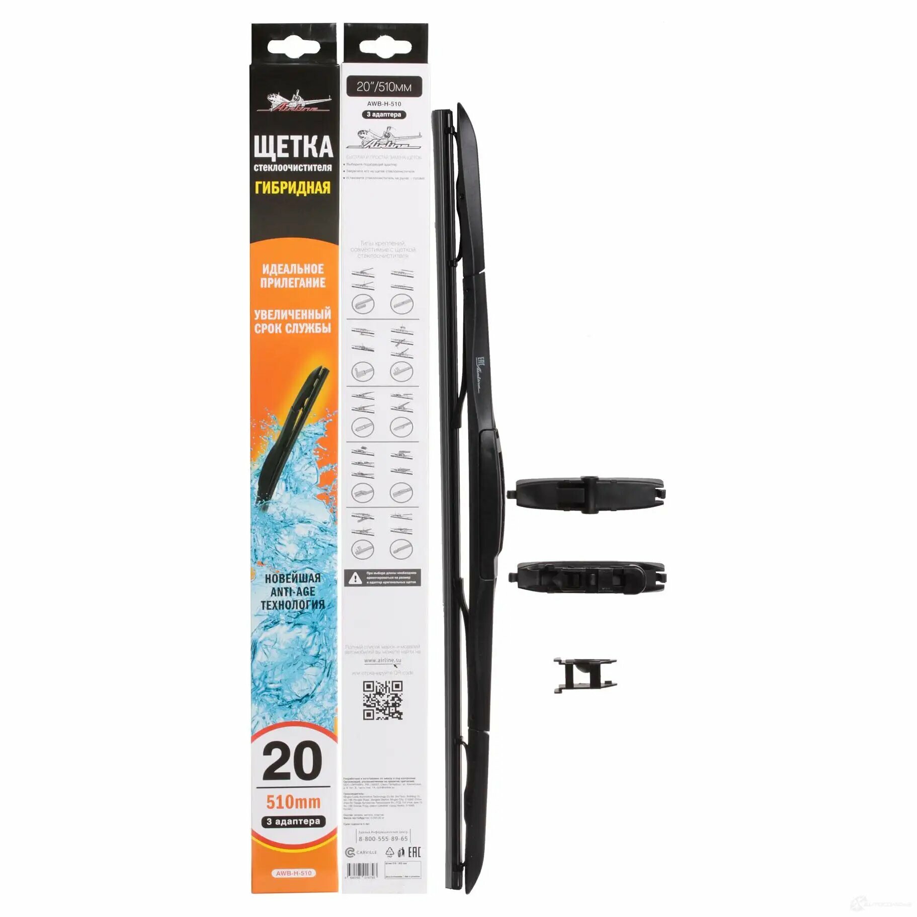 Щетка стеклоочистителя 510 мм (20") гибридная, 3 адаптера AWB-H-510 AIRLINE
