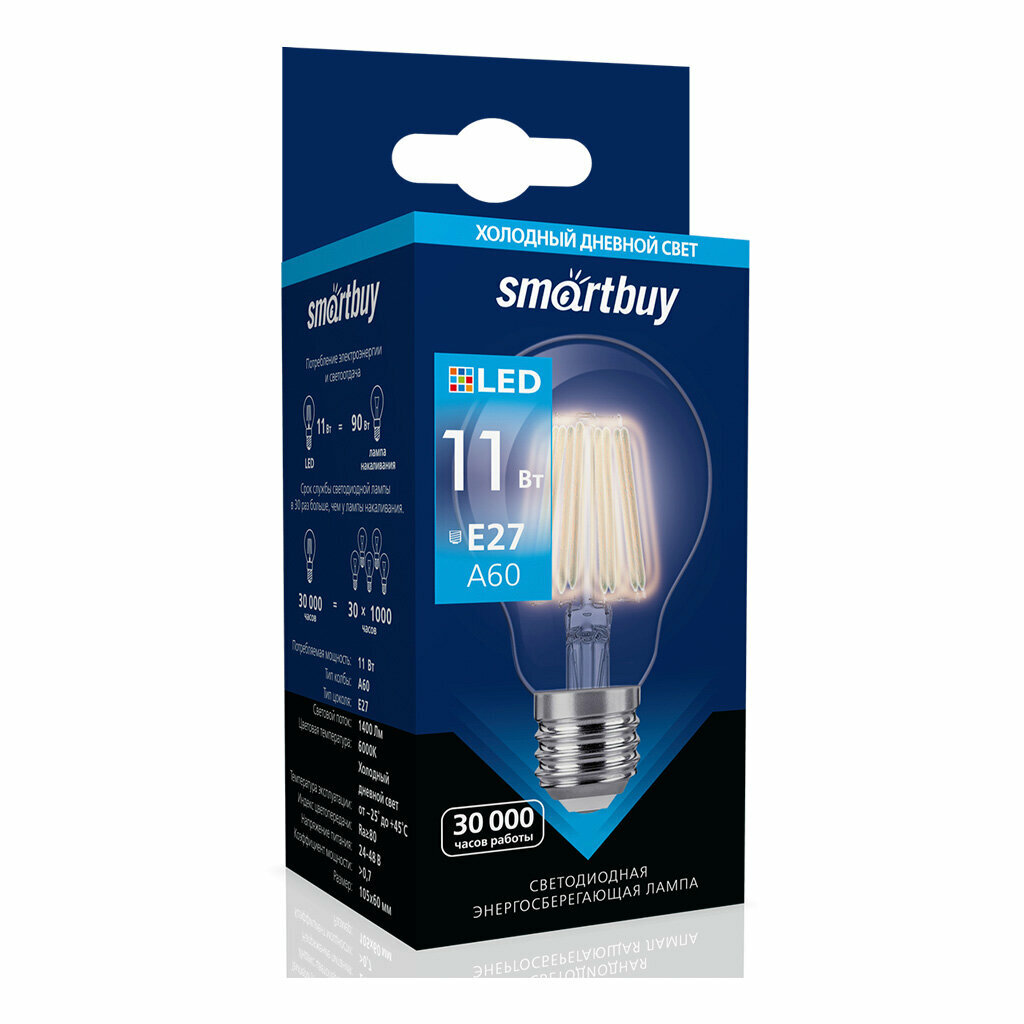 Лампочка SMARTBUY SBL-A60F-11-60K-E27 FIL 11 Вт, Е27, прозрачный