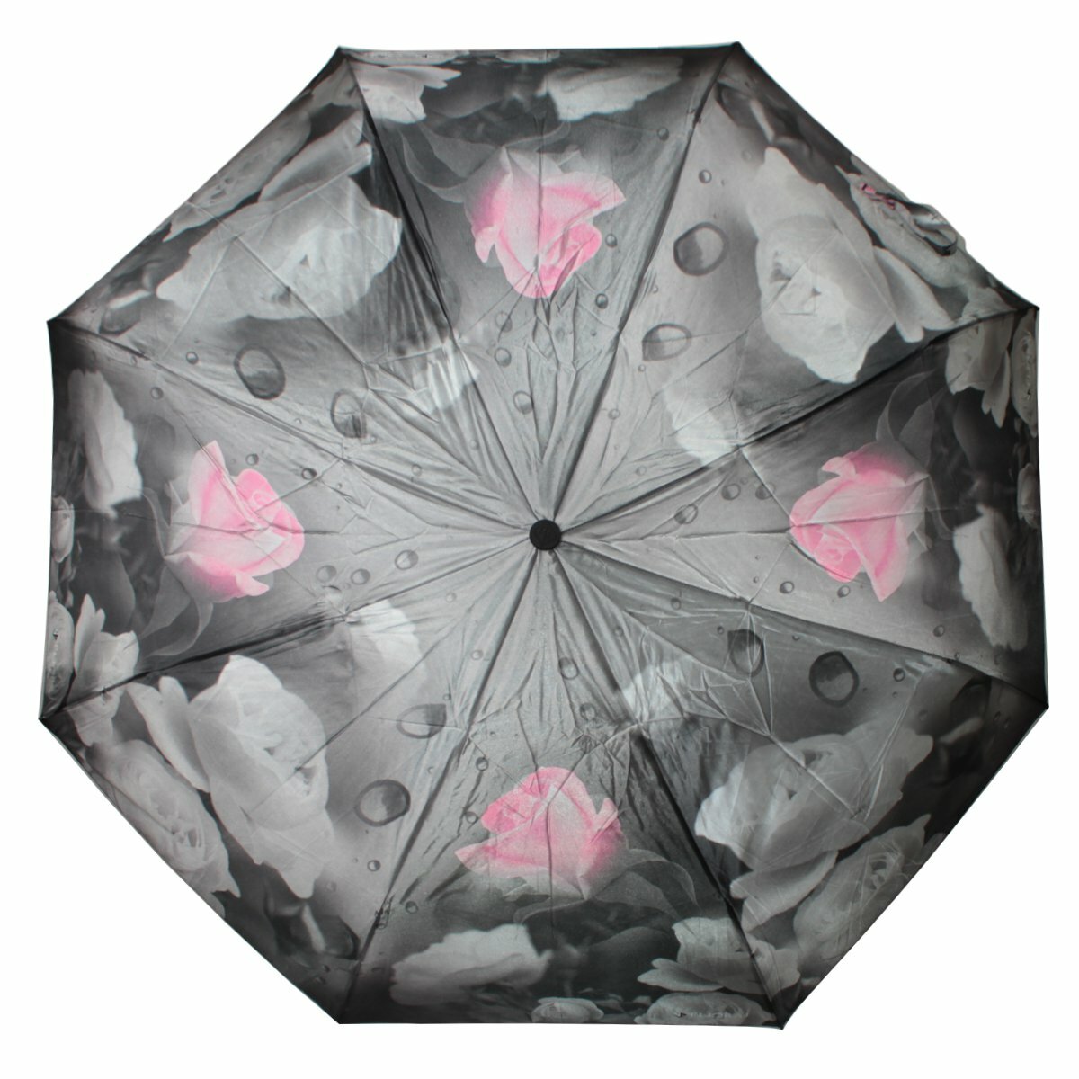 Темно-серый складной зонт и розами Flioraj 190215 FJ