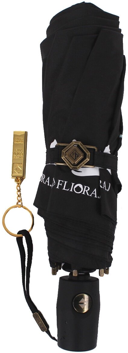 Зонт женский Flioraj Чёрный 3 сложения Автомат Антиветер с брелоком 21052 FJ