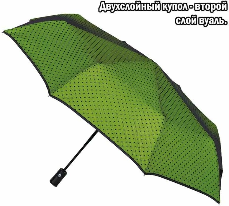 Зонт женский Flioraj Зелёный 3 сложения Автомат Антиветер Вуаль 22002 FJ