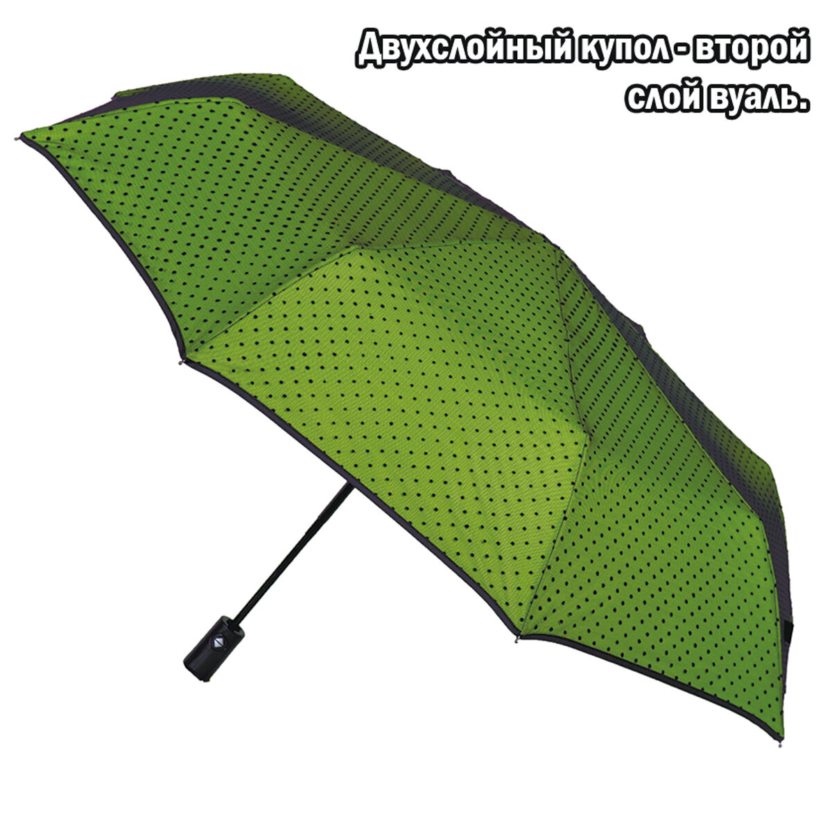 Зонт женский Flioraj Зелёный 3 сложения Автомат Антиветер Вуаль 22002 FJ