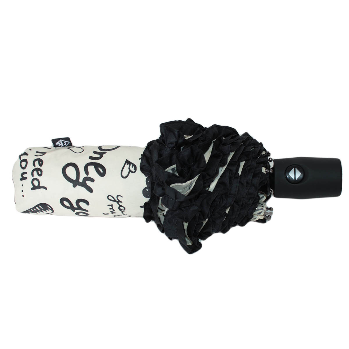 Серый складной зонт с объемной оборкой купола Flioraj 250108 FJ интересное: