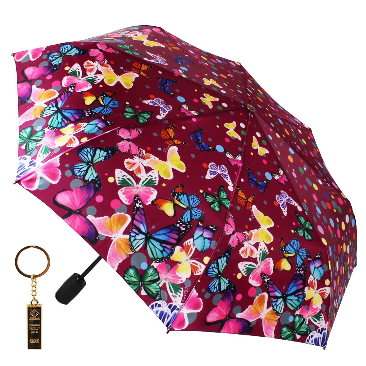 Зонт женский Flioraj Фиолетовый 3 сложения Автомат Антиветер с брелоком 23133 FJ