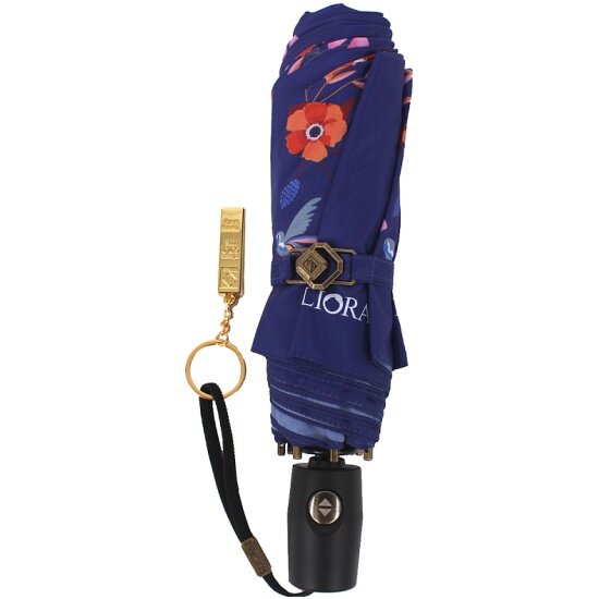 Зонт женский Flioraj Синий 3 сложения Автомат Антиветер с брелоком 16093 FJ