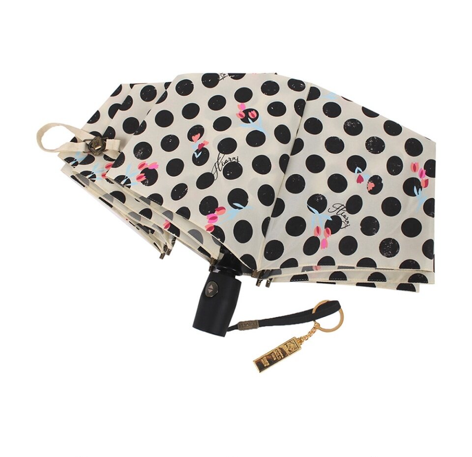 Зонт "Три Слона" женский №310-5, купол D=103 см, 10 спиц, суперавтомат бежево-черный