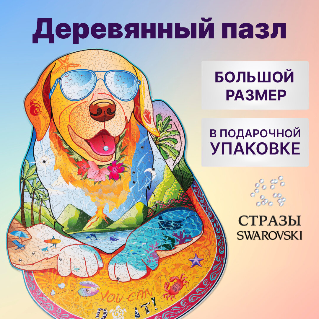 Купить Деревянный пазл Wood Trick Лабрадор-Серфингист с кристаллами Swarovski (46x35 см)