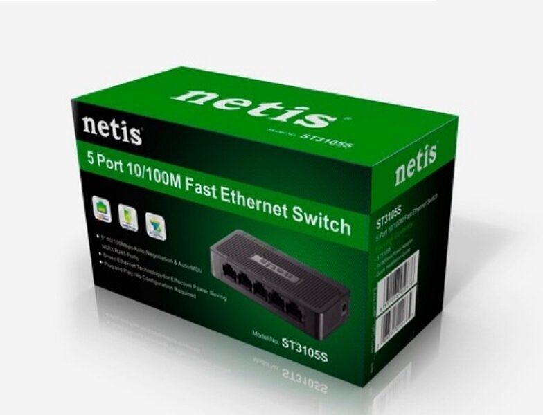 Коммутатор 5PORT 10/100M ST3105S NETIS Коммутатор 5-портовый 10/100 Мбит/с, настольный, пластиковый корпус