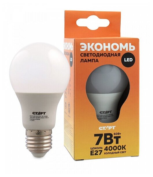Лампа светодиодная Старт ECO LEDGLSE27 7W40