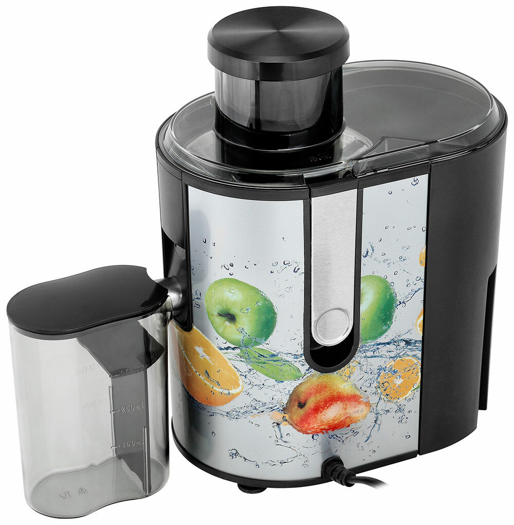 Соковыжималка Polaris PEA 0829, центробежная, серебристый и рисунок