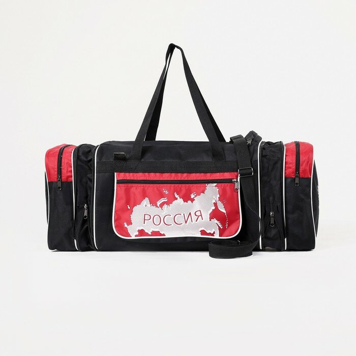 Сумка спортивная на молнии с увеличением, 3 наружных кармана, цвет чёрный/красный