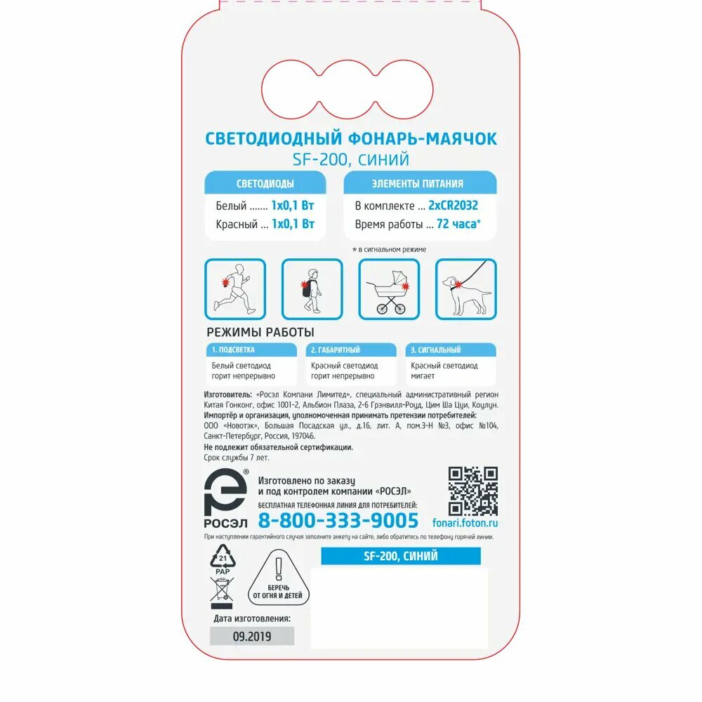 Фонарь светодиодный Фотон SF-200 маячок, ассорти