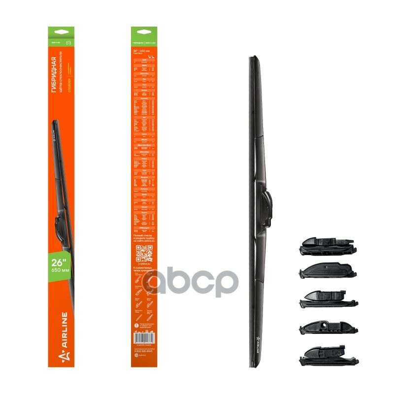 Щетка стеклоочистителя гибридная 650 мм (26), 8 адаптеров Airline AWBH650