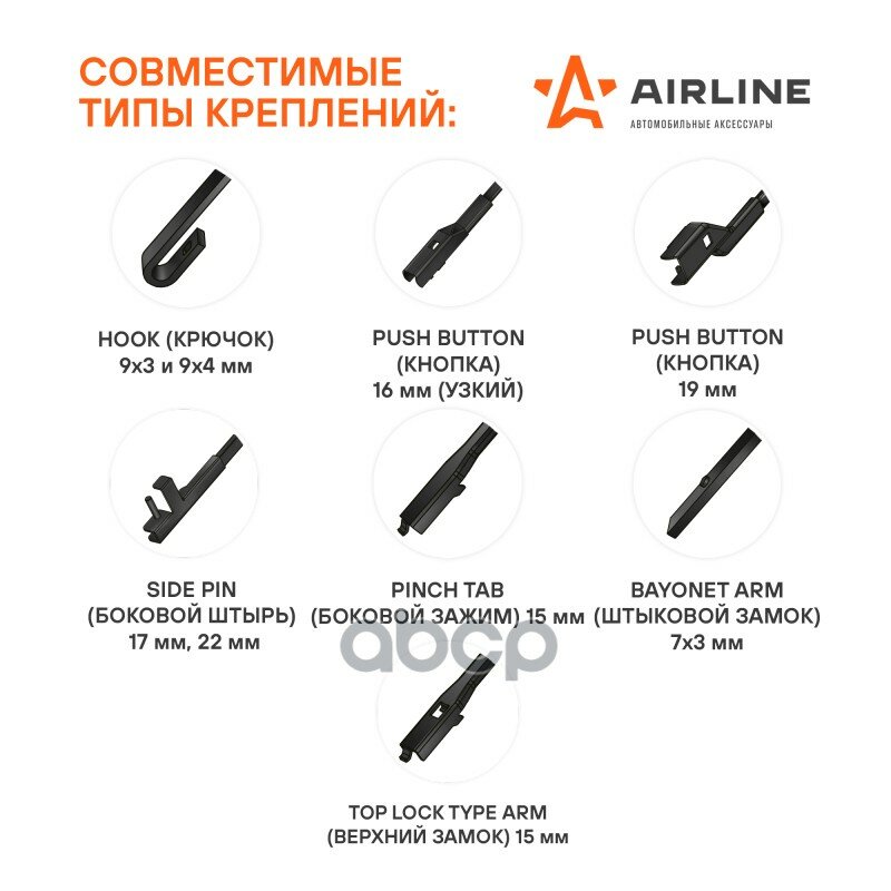 Сохранить"Щетка стеклоочистителя 650 мм (26"") гибридная, 8 адаптеров awb-h-650" Airline AWBH650 интересное: