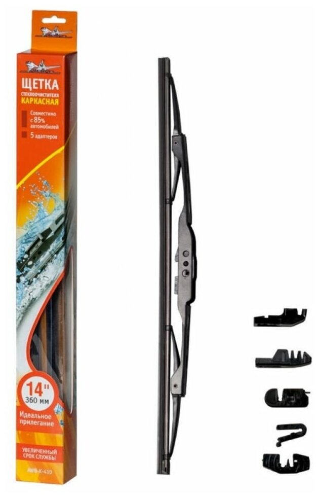 Щетка стеклоочистителя 350 мм (14") каркасная, 2 адаптера AWB-K-360 AIRLINE