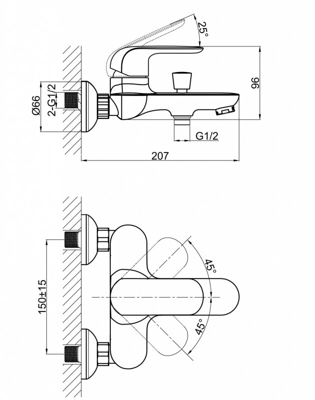 | Длина излива | 207 мм |