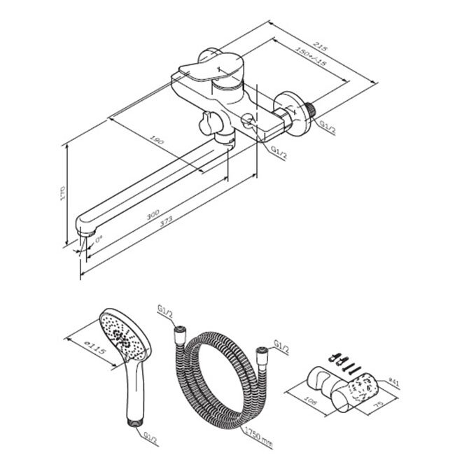 | Комплектация | смеситель - 1 шт. / держатель для душа - 1 шт. / шланг - 1 шт. / лейка - 1 шт. / эксцентрики - 2 шт. |