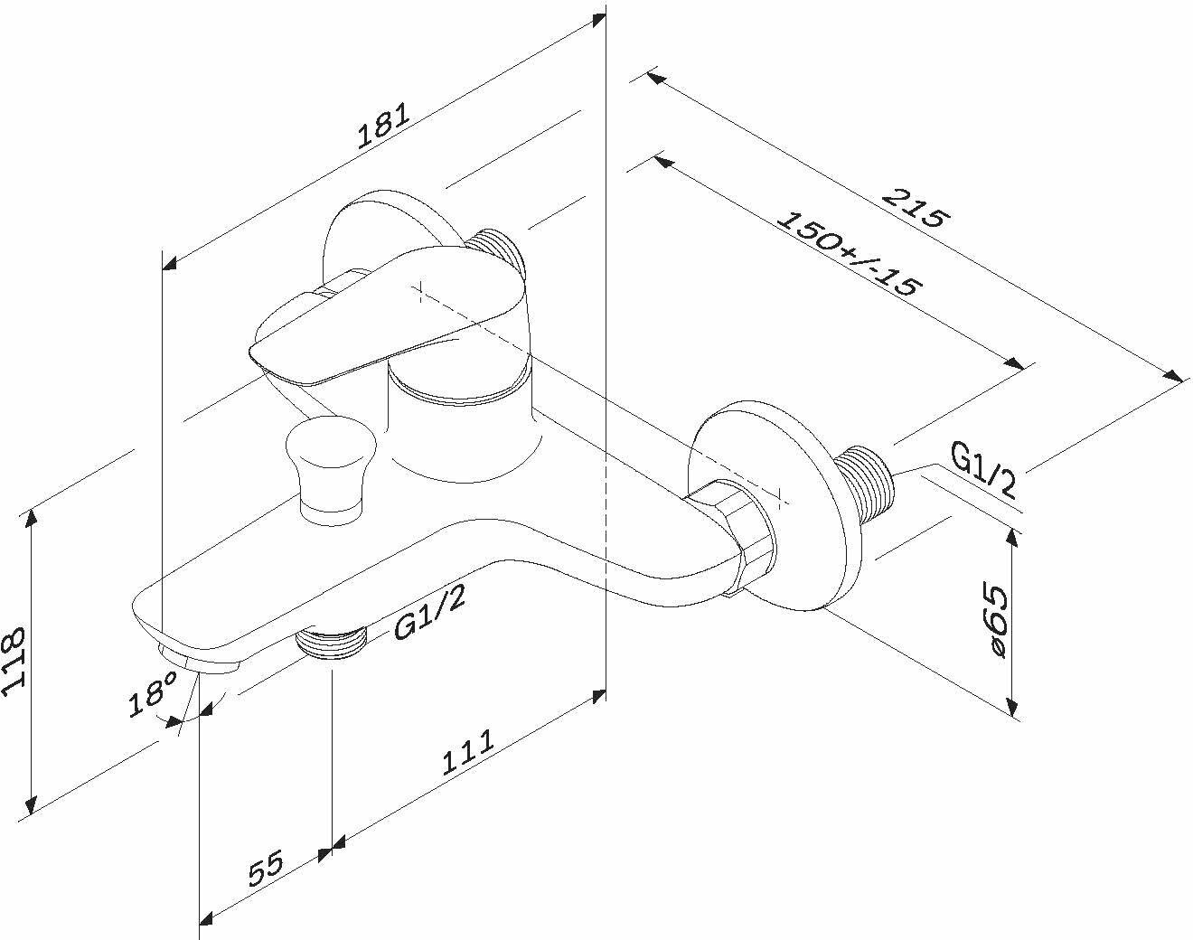 Смеситель для ванны AM.PM Joy, латунь, горизонтальный монтаж, длина излива 166 см