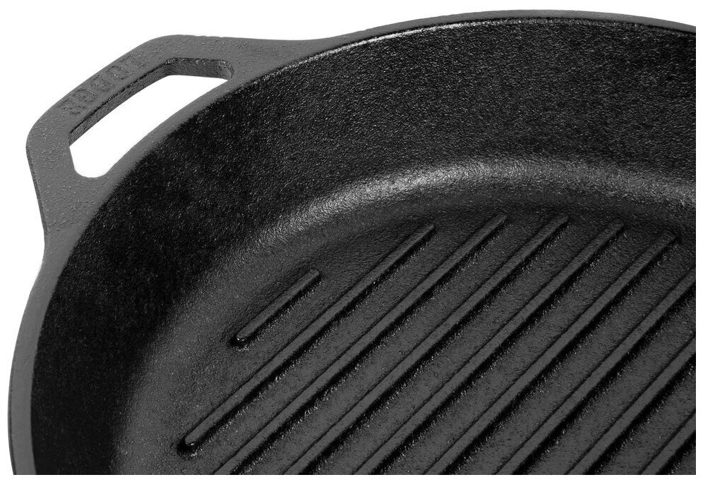 Сковородка-гриль круглая 26 см с двумя ручками, чугун, черная Lodge интересное:
