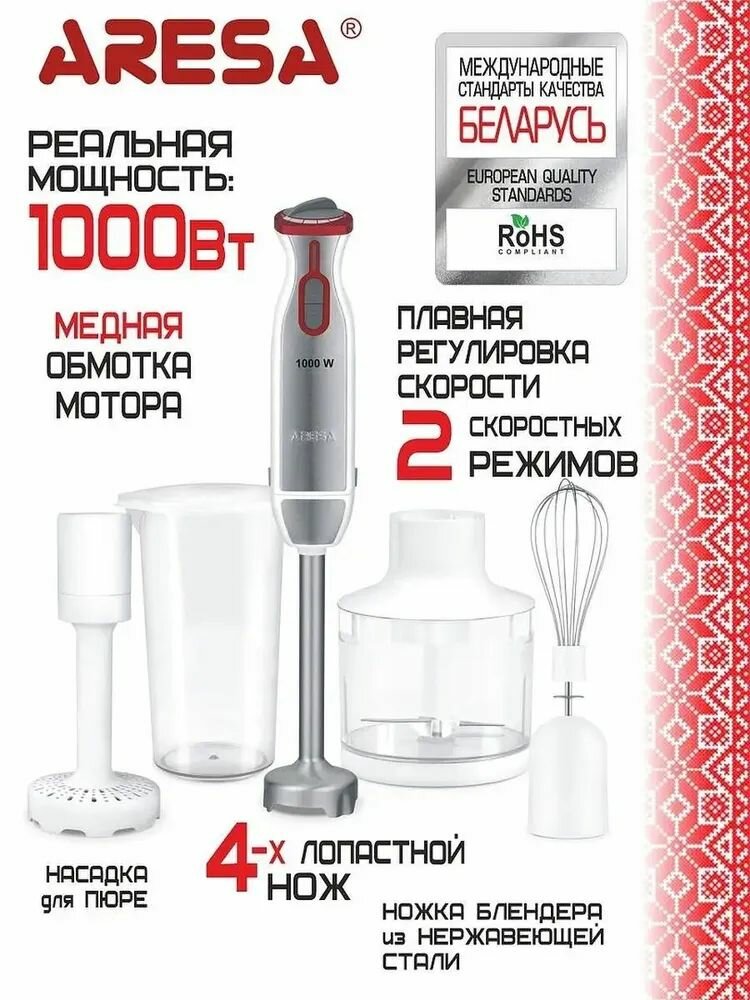 Погружной блендер ARESA AR-1107, белый/серебристый/красный