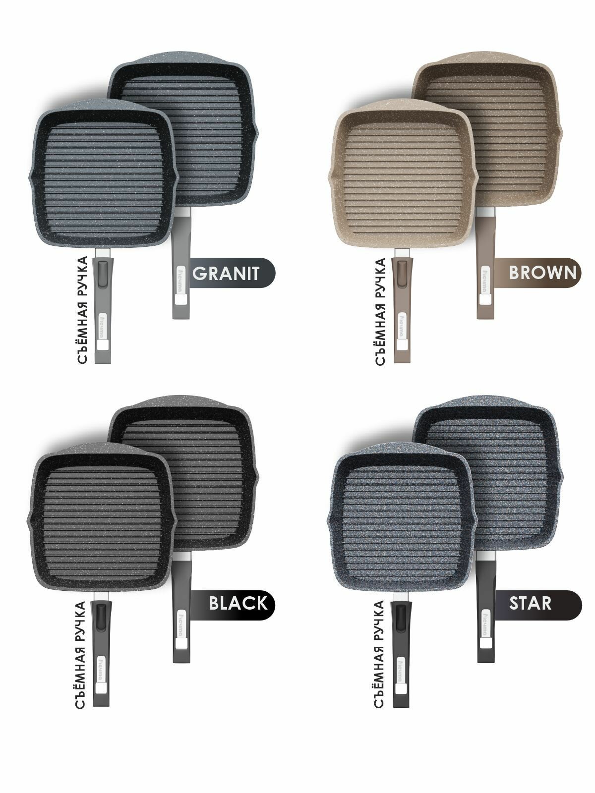 Сковорода-гриль 26*26см со съемной ручкой, Гранит black