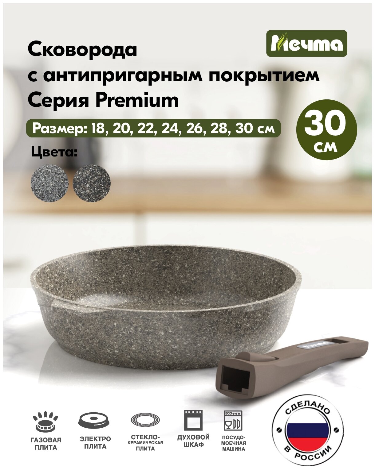 Сковорода Мечта Premium, съемная ручка, диаметр 30 см