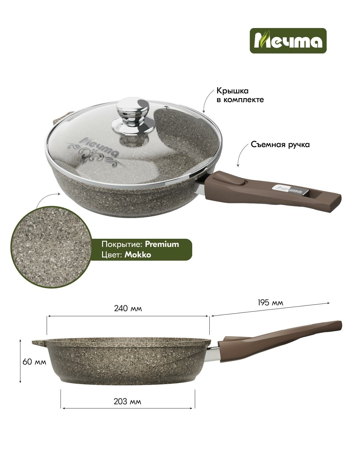 Мечта 024902 Premium (mokko) 24 см со съемной ручкой