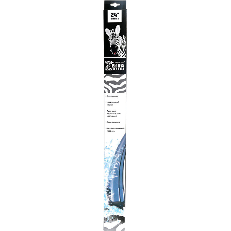 Щетка стеклоочистителя бескаркасная Zebra 24"/600 мм 4 переходника AZARD SCHET174 | цена за 1 шт