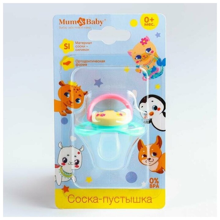 Mum&Baby Соска-пустышка ортодонтическая, силикон, +0мес., цвет бирюзовый