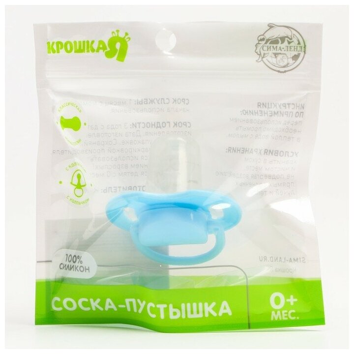 Купить Соска-пустышка классическая, силикон, от 0 мес., с колпачком, цвет голубой