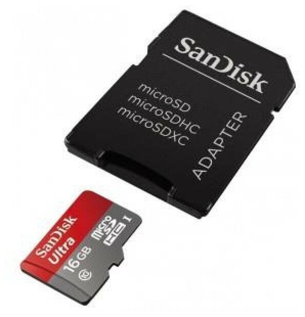 Карта памяти Sandisk Ultra microSDHC + SD Adapter, 16 ГБ, 80 МБ/с Class 10
