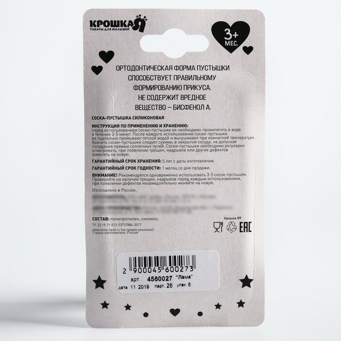 Соска - пустышка силиконовая ортодонтическая "Лама", от 3 мес. интересное: