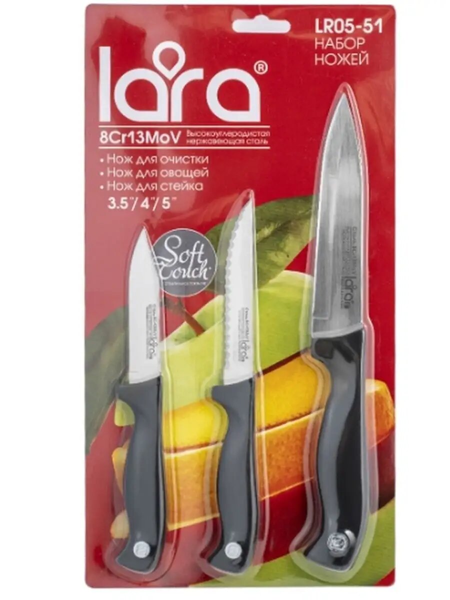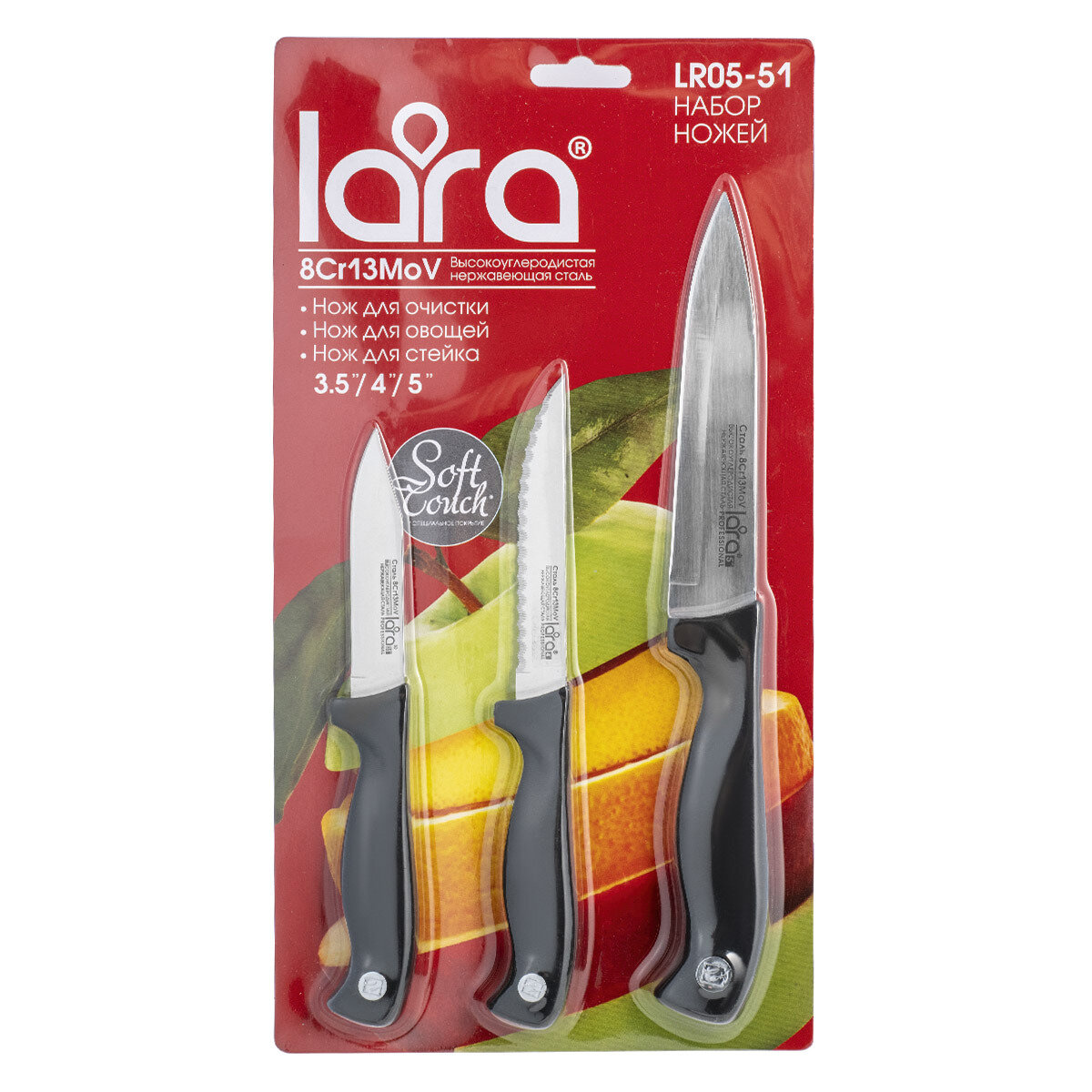 Набор ножей LARA LR05-51, 3 предмета из нержавеющей стали, прорезиненная рукоятка