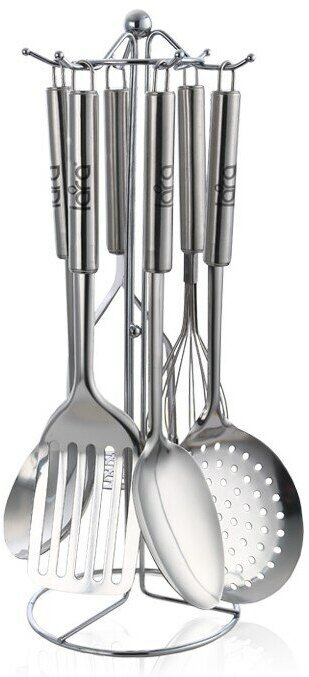 LR07-31 LARA Набор кухонных принадлежностей, 7 предметов, металлический стенд, сталь, полировка
