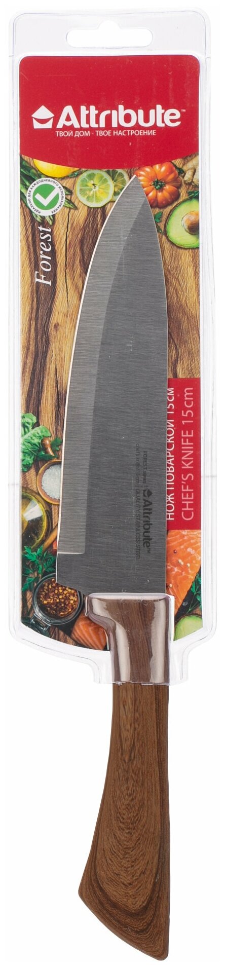 Нож поварской Attribute FOREST Длина лезвия 15 см нержавеющая сталь Материал ручки пластик для кухни