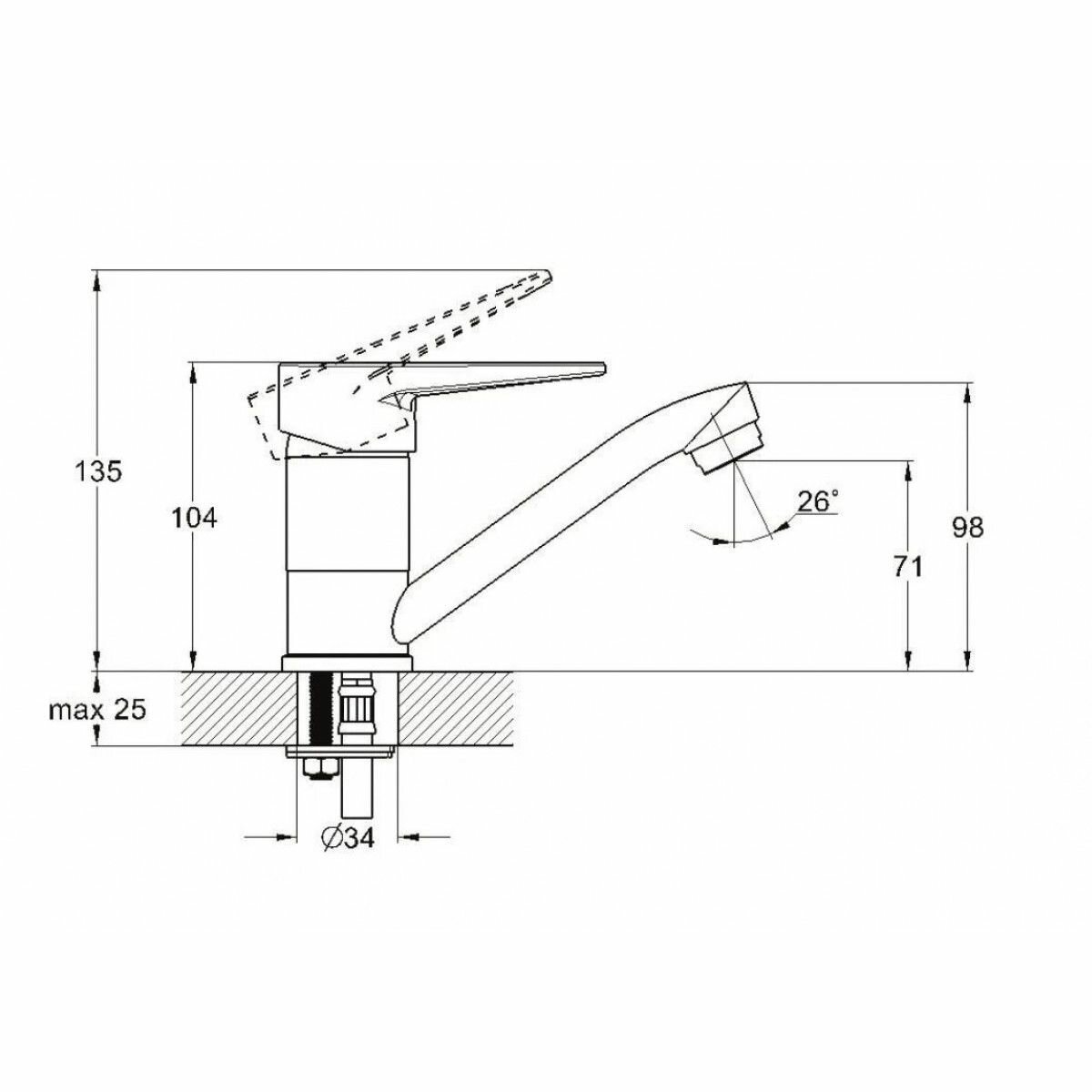 Смеситель для кухни короткий излив одноруч К35