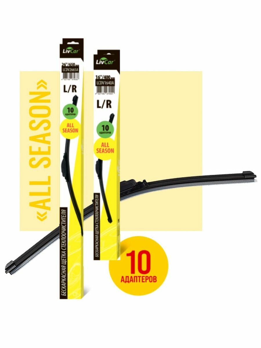Щетка Стеклоочистителя Бескаркасная Livcar All Season, 26'/650 Мм Universal. 10 Адаптеров LivCar арт. LCDV2665A