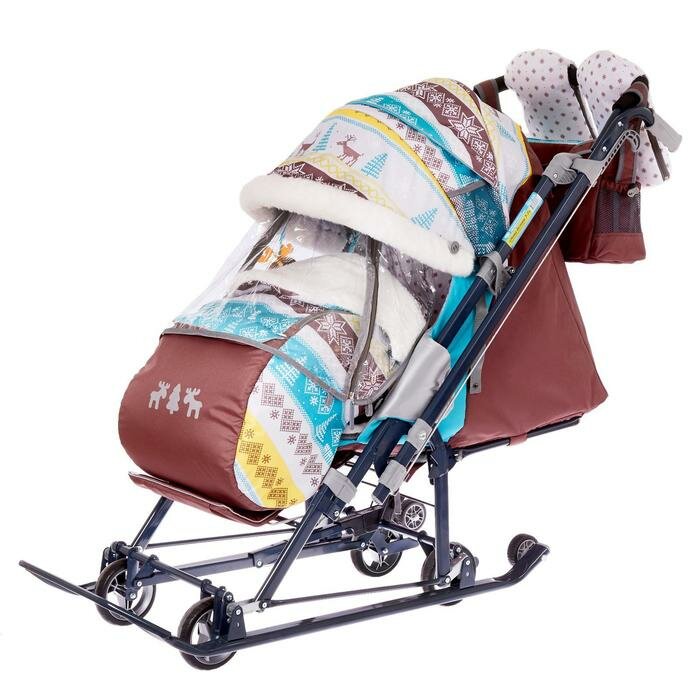 Санки коляска «Ника Детям НД 7-7», принт скандинавский, цвет бирюзовый, механизм качания интересное: