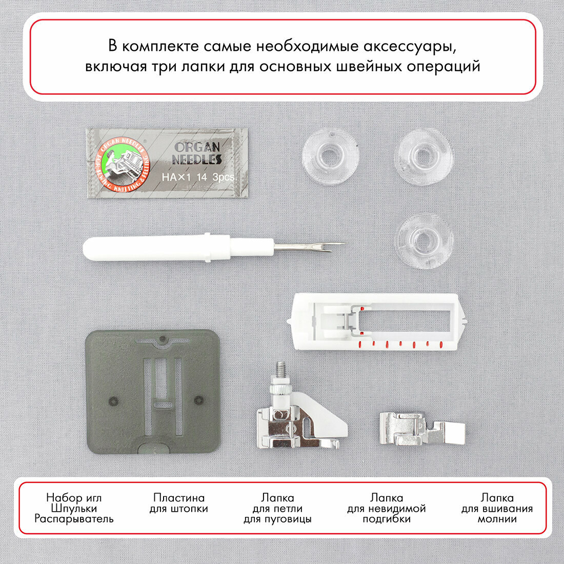 | Строчки | обметочная, потайная, эластичная, эластичная потайная, «зигзаг» |
