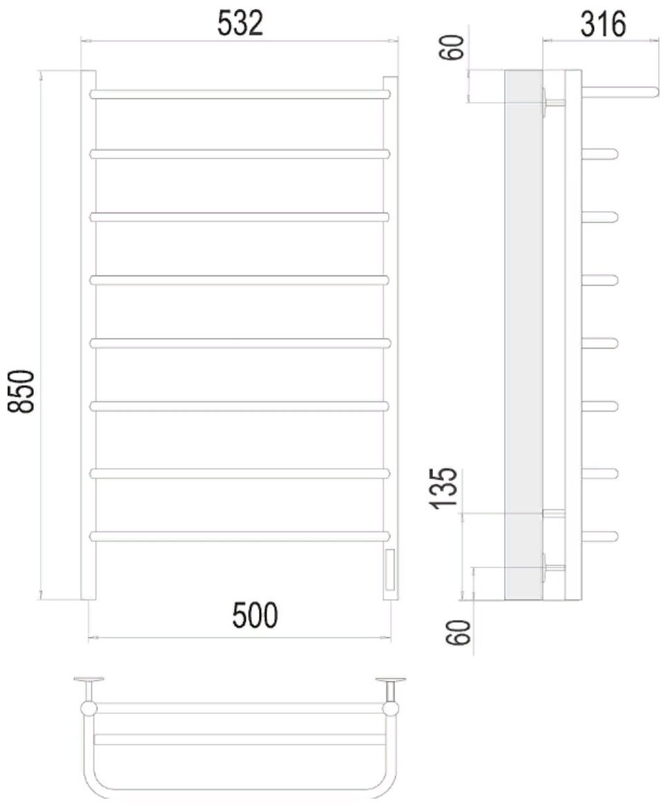 Полотенцесушитель TERMINUS Полка П8 (ШВ:500х850) электро, нерж.сталь, quick touch, правый