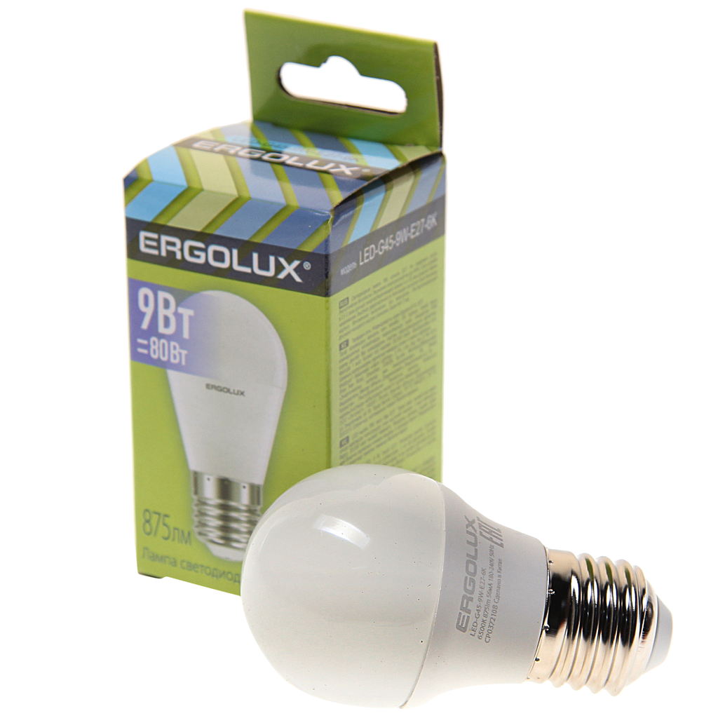 Электрическая светодиодная лампа Ergolux LED-G45-9W-E27-6K Шар 9Вт E27 6500K 172-265В 13178