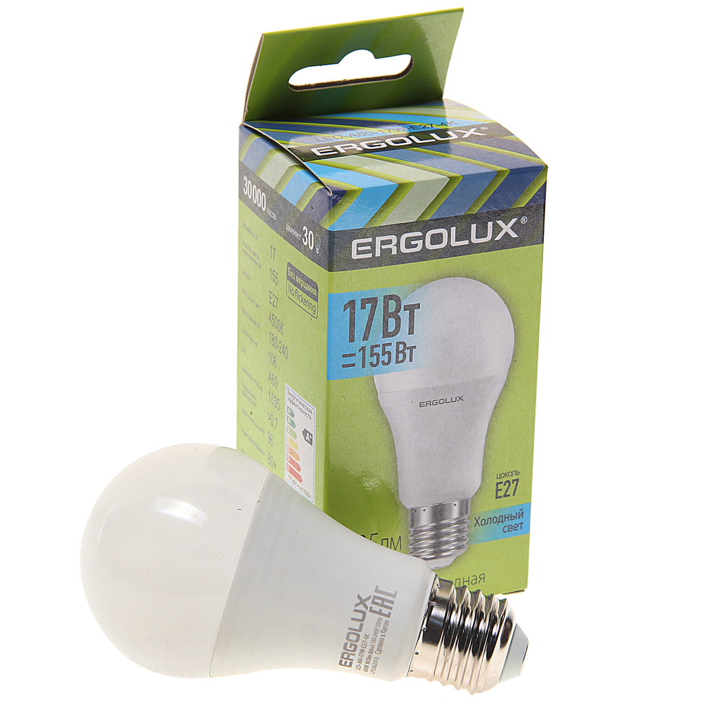 Лампа светодиодная E27, 17 Вт, 155 Вт, груша, 6500 К, свет холодный белый, Ergolux