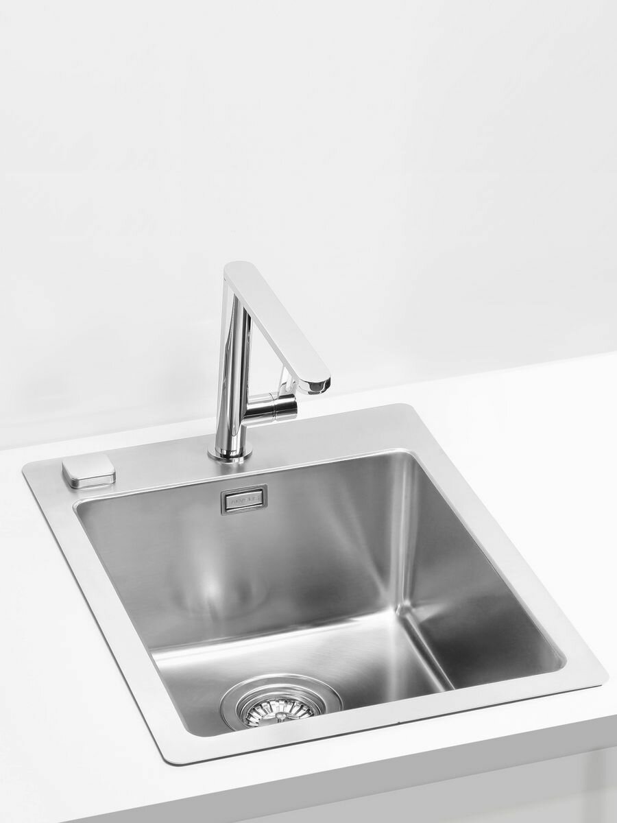 Купить Мойка для кухни врезная встраиваемая нержавеющая сталь ALVEUS PURE 10 KMB-90 40,5 X 52,5 см с сифоном. Цвет серый металлик